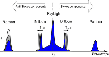 發(fā)現(xiàn)瑞利散射分量與入射光具有相同的波長(zhǎng)l 0。有兩個(gè)拉曼分量偏移相同的量(斯托克斯分量)和低于l0(反斯托克斯組件)。類似地,布里淵背向散射由兩個(gè)在低于和高于l 0的